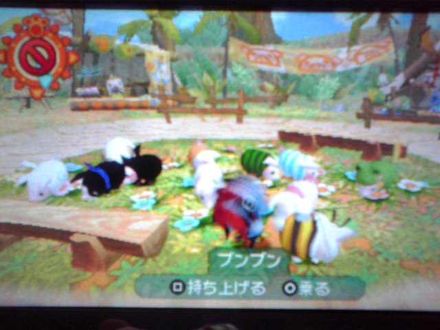 おむつつけたぷぎさんは最強。ちなみにここで、ゲーム内のみつばちの衣装が手に入りまして、これがダウンドードしたMHP3のミツバチ衣装きたぷぎさん!
