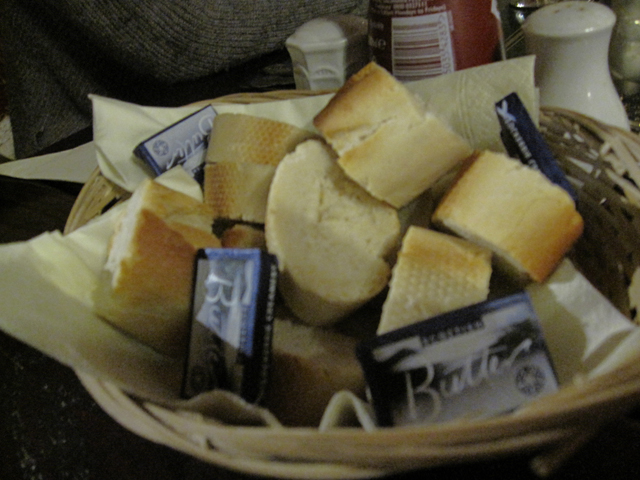 まずはパンを頼んでたらパンが先に来た。正直いまいち堅くてぱさぱさ。