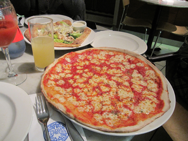 ピザ・・・だけど、正直に言う。こんなでっかいピザ、初めて見た。ほんと初めて見た。