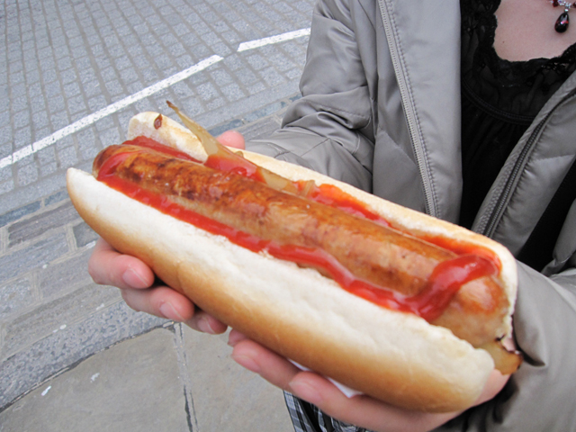 大英博物館前の露天のホットドック!中にいためたタマネギも入ってて、超良い匂いしててお腹が空いてないけどもう食べる機会がない!と買ってしまったシロモノ。